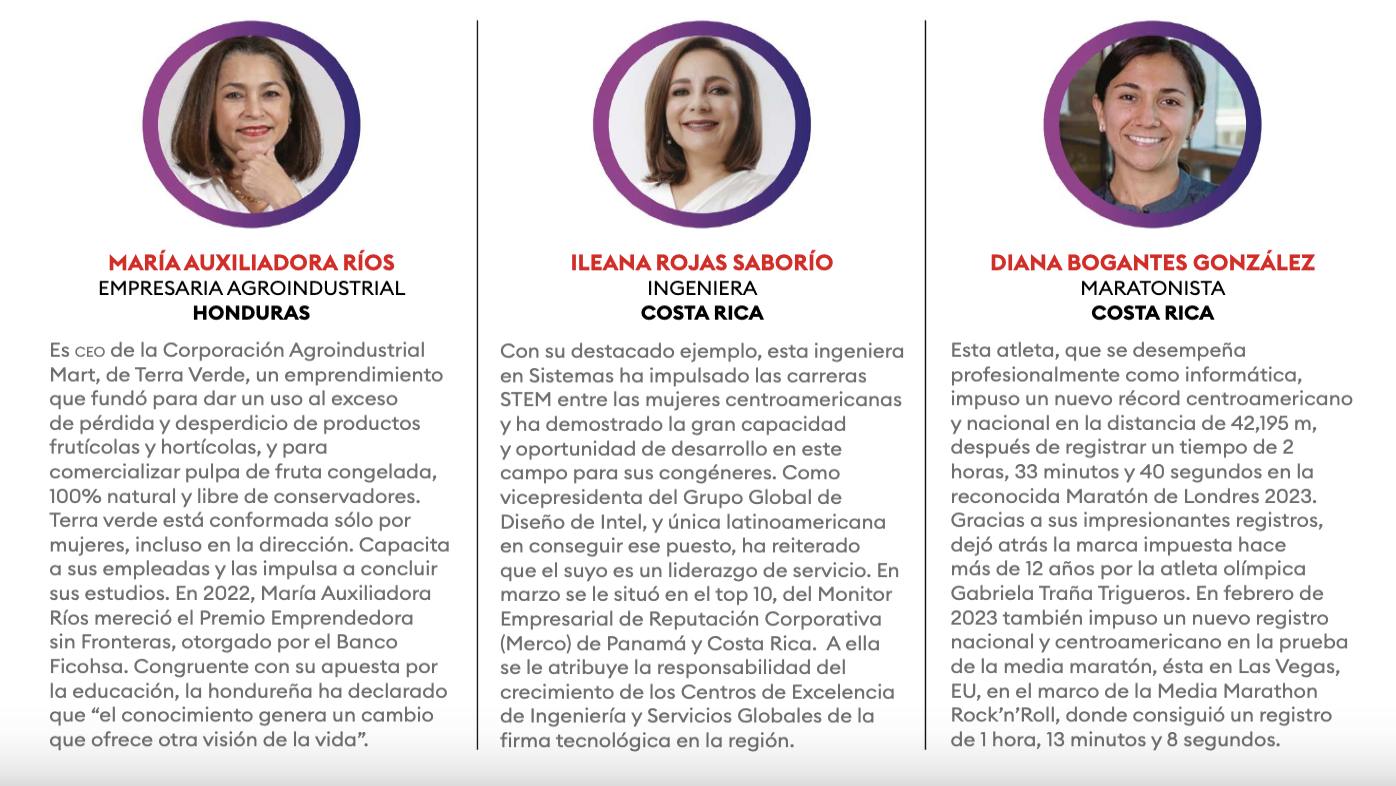 El listado de las 100 Mujeres Poderosas 2023 de Forbes Centroamérica está integrado por diversas líderes empresariales, ingenieras, científicas, deportistas, activistas, políticas y hasta futuristas, que con su hacer lideran los procesos de equidad e inclusión en la región.