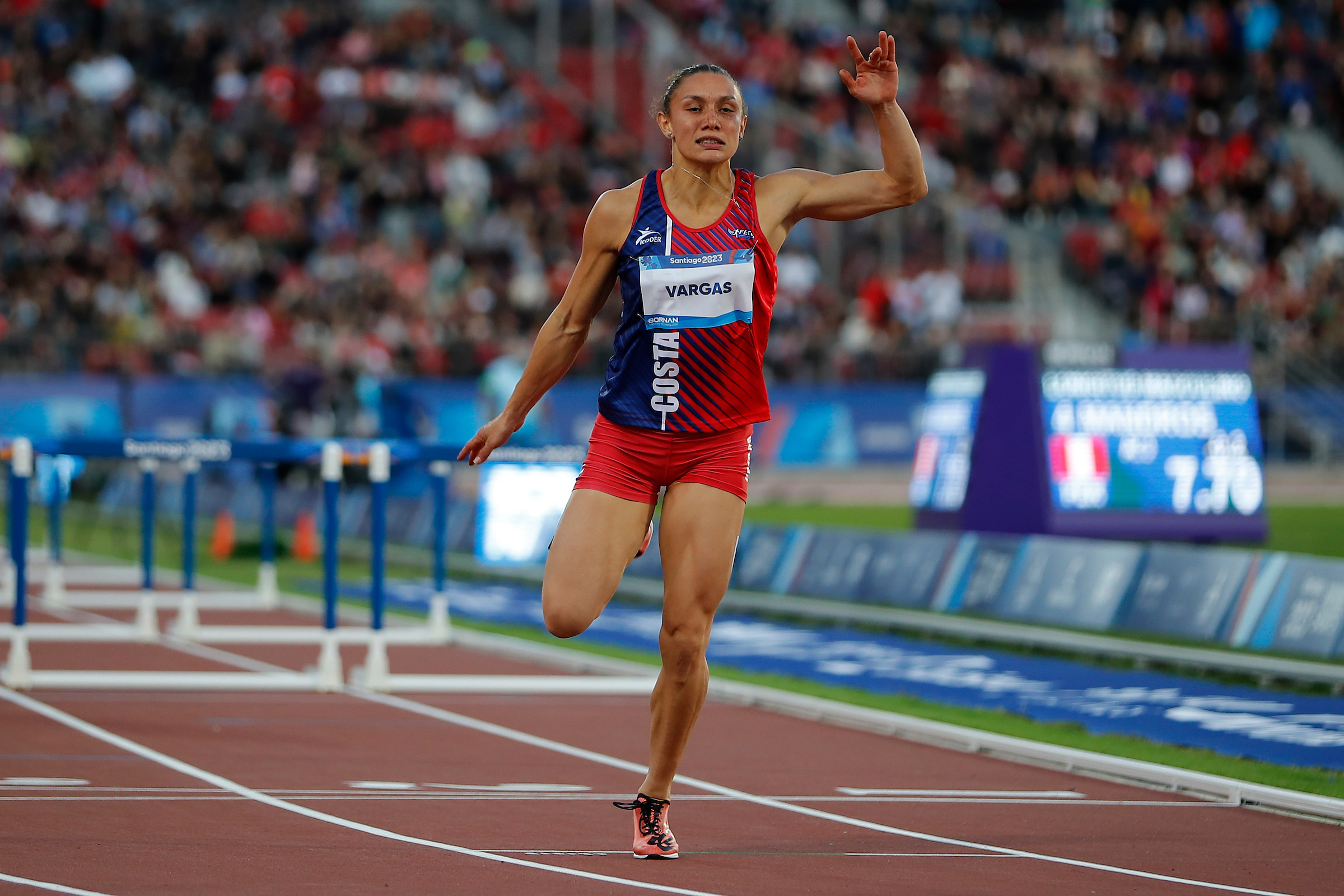 Lo logró. La atleta costarricense Andrea Vargas Mena ganó medalla de oro en la prueba de 100 metros con vallas femenino de los Juegos Panamericanos de Santiago 2023.