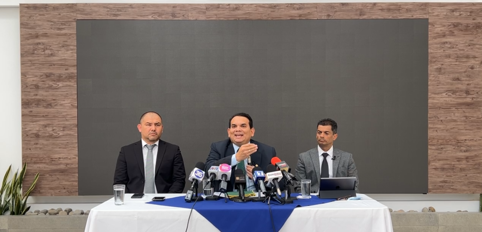 El director del Organismo de Investigación Judicial (OIJ), Randall Zúñiga López; junto al fiscal general de la República, Carlo Díaz Sánchez y el fiscal adjunto de atención y protección a la víctima, José Ángel Peñaranda Chaverri realizaron una conferencia de prensa la mañana de este martes para ampliar la denuncia realizada ayer sobre el recorte efectivo al presupuesto 2023 del OIJ, el Ministerio Público y la Oficina de Atención y Protección de Víctimas y Testigos.