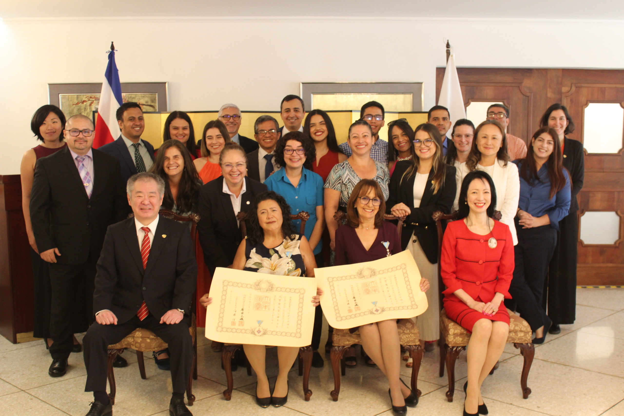 Les agradecemos por sus años de trabajo que contribuyeron a la labor de la embajada del Japón en Costa Rica y que las hace merecedoras de este importante reconocimiento por parte del gobierno japonés”.