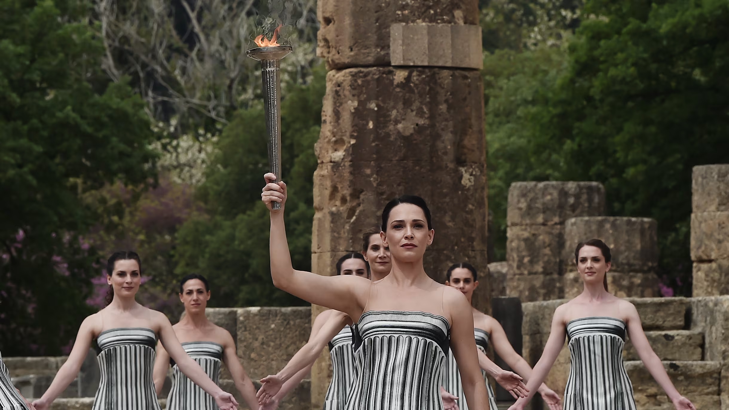 Durante un ritual que une los Juegos Olímpicos modernos con sus orígenes antiguos, la llama olímpica fue encendida frente a las ruinas del templo de Hera. Entre los asistentes, se encontraron el presidente del Comité Olímpico Internacional (COI), Thomas Bach, y el presidente de París 2024, Tony Estanguet.