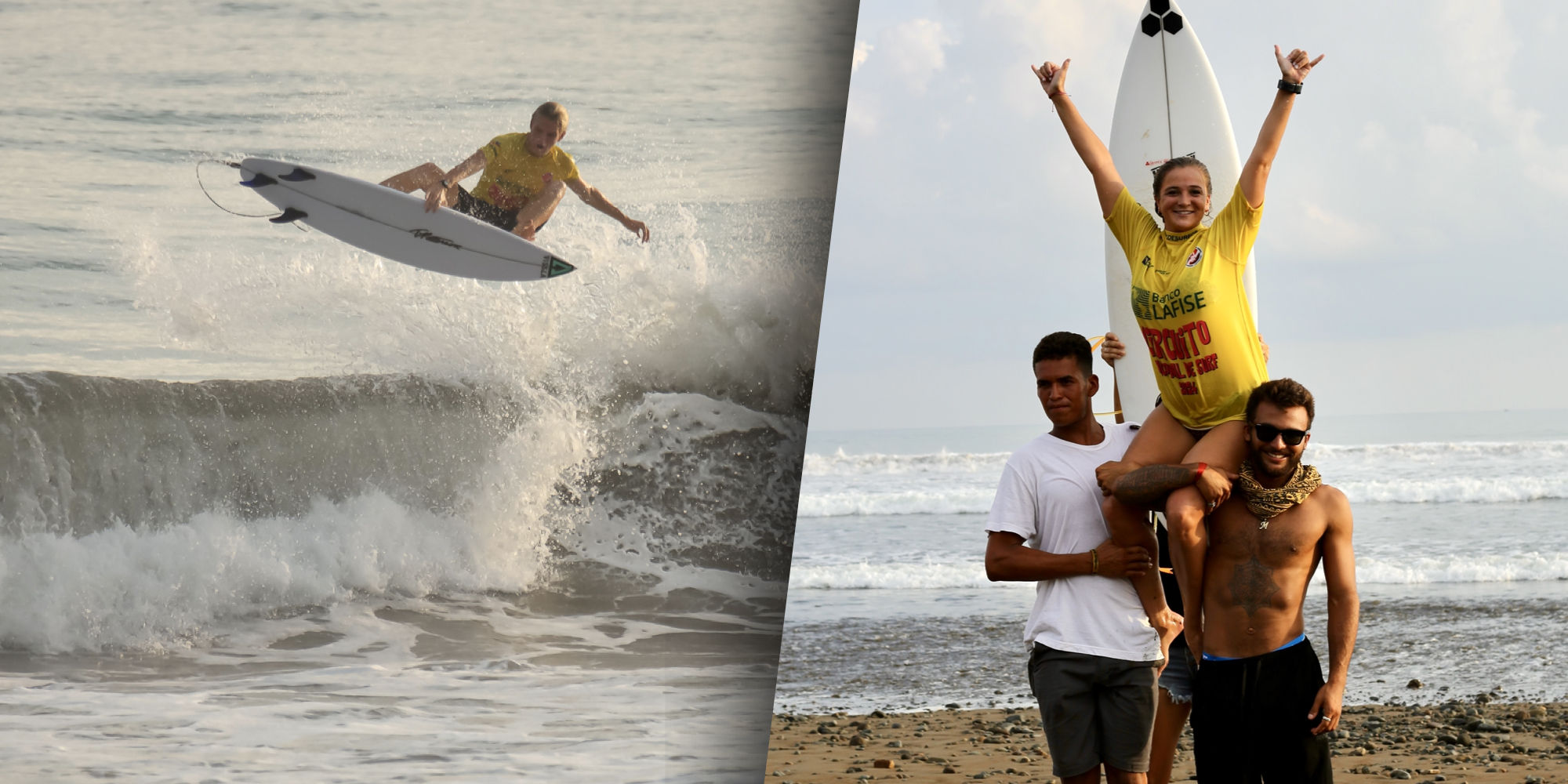 Los actuales campeones nacionales de Costa Rica, Sam Reidy Kline de 20 años y Coral Wiggins Araya de 23 años, ganaron la segunda fecha del Circuito Nacional de Surf 2024 en playa Dominical, en el pacífico costarricense.