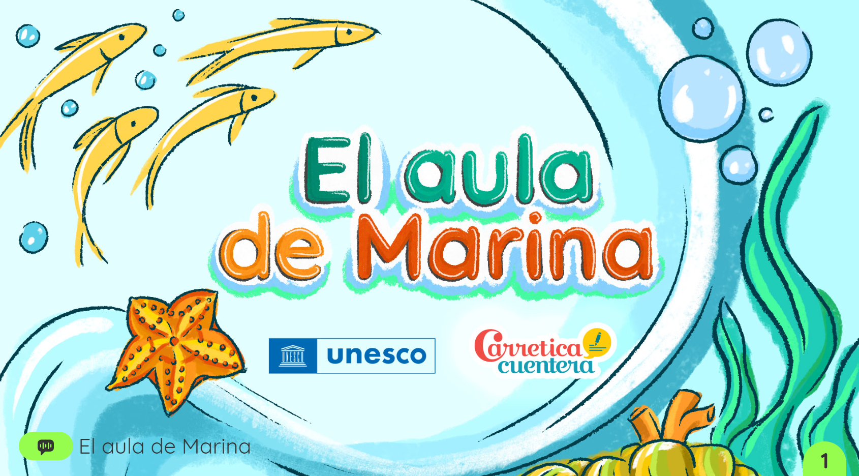Carretica Cuentera, en alianza educativa con la UNESCO publicaron un nuevo audiolibro titulado El Aula de Marina. Este recurso educativo gratuito está diseñado para promover la protección del océano y los recursos marinos entre los niños y niñas, alineado con el currículo azul de la UNESCO.