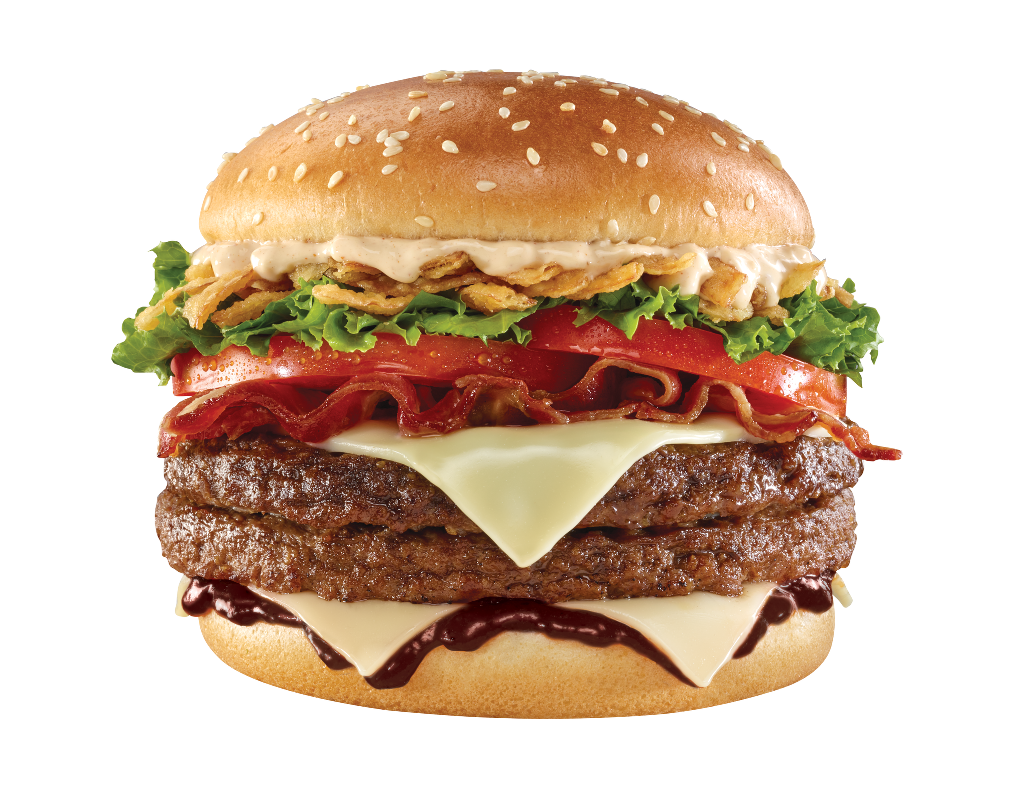 Regresa al menú en sus presentaciones, Original, Bacon BBQ, dobles y sencillas, junto a las papas Tasty Bacon.