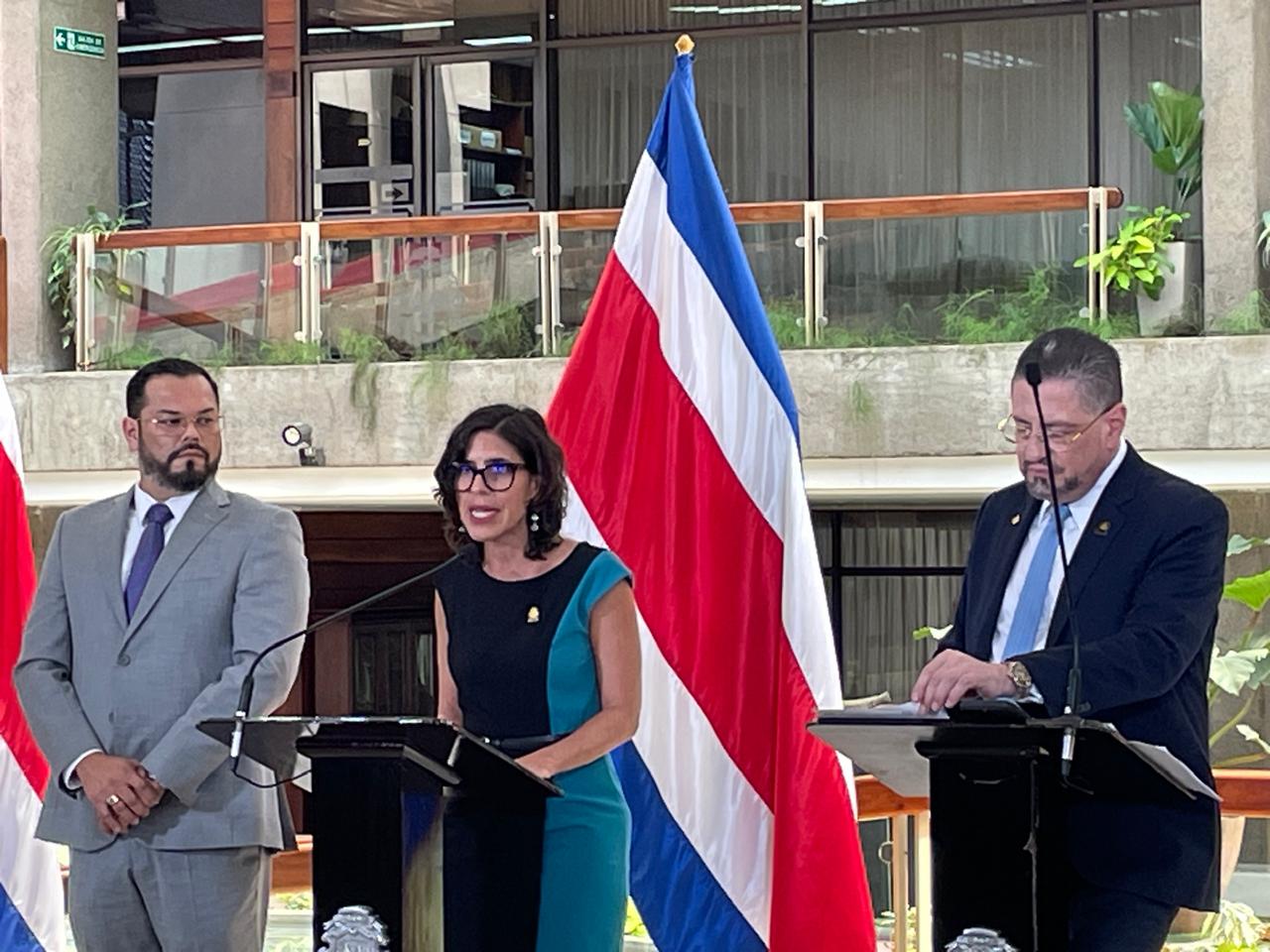 Bogantes Zamora por su parte dijo que "tenemos un proceso donde, por lo sospechoso de su evolución, queremos llamar la atención de todos los costarricenses". La jerarca y el presidente cuestionaron que el juez del Contencioso Administrativo, Johel Beausejour Chaves, aceptara la medida con celeridad.