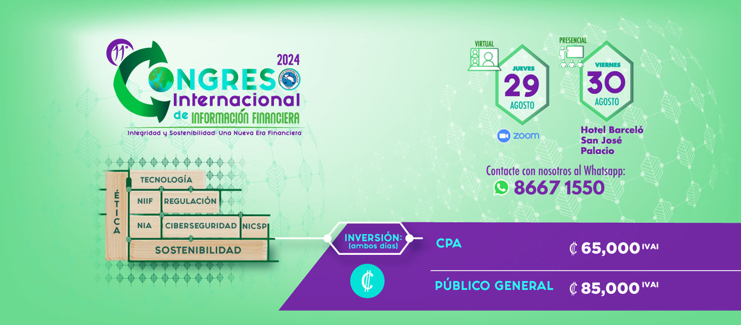 El Colegio de Contadores Públicos de Costa Rica desarrollará este tema durante el 11° Congreso Internacional de Información Financiera del próximo 29 y 30 de agosto 2024, “Integridad y Sostenibilidad: Una Nueva Era Financiera” (www.ccpa.or.cr / https://elearningccpa.or.cr/ ).