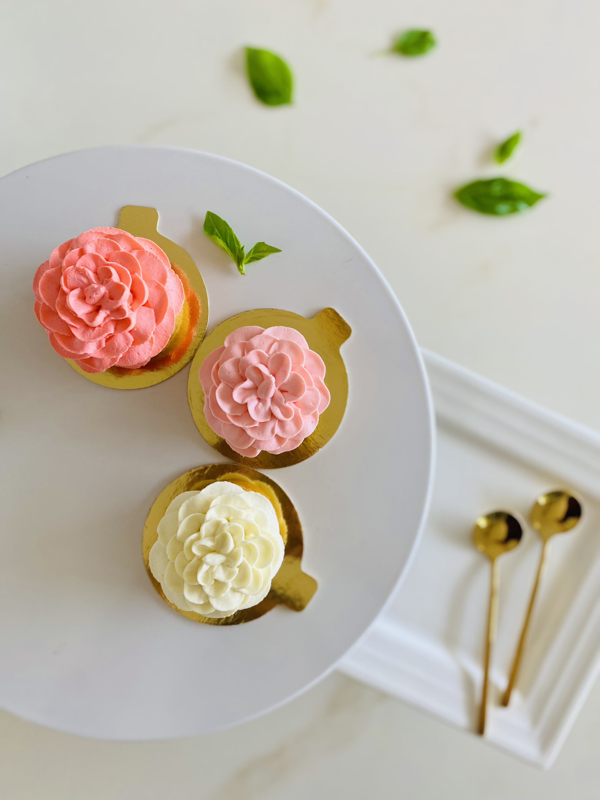 Se trata de tres tartaletas de vainilla rellenas de un delicioso ganache cremoso de albahaca y fresas.