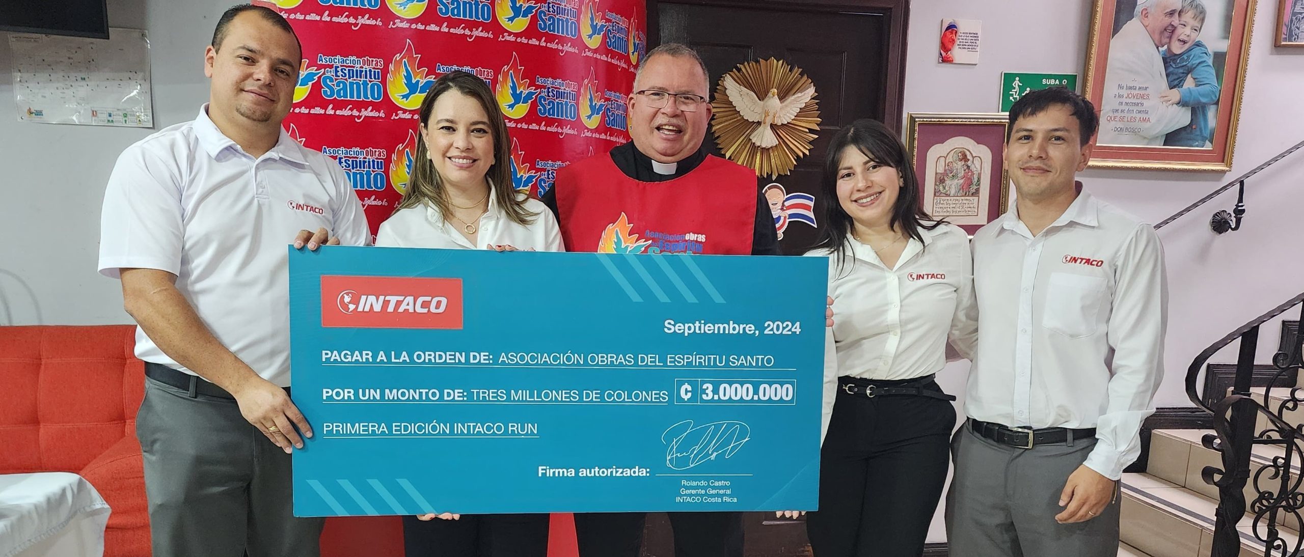 La I Edición de INTACO RUN cumplió el objetivo de inspirar no solo a la práctica deportiva, por salud y recreación, sino para apoyar a la Asociación Obras del Espíritu Santo con la entrega oficial de ₡3,000,000 como colaboración de INTACO.