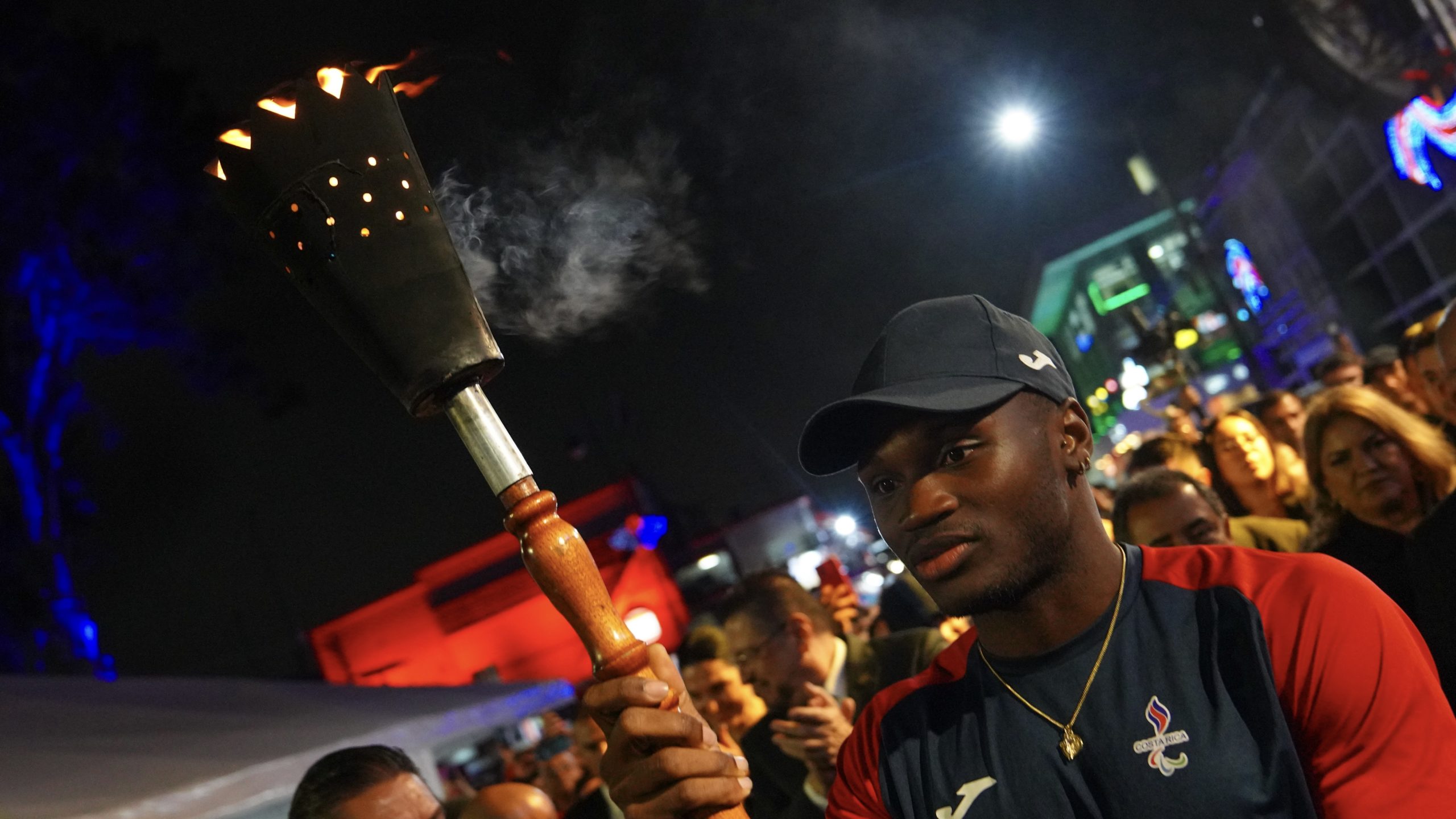 Después de una breve ceremonia, el presidente Rodrigo Chaves le entregó la antorcha a Güity, quien la llevó hasta el pebetero en medio de los aplausos del público.