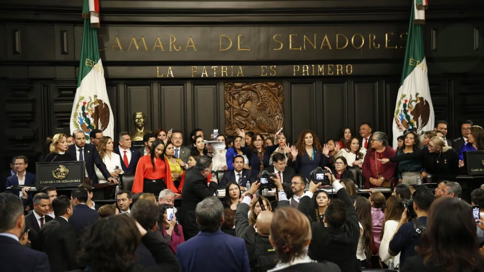 — La votación, que fue interrumpida por manifestantes que irrumpieron en la cámara, se reanudó una vez que el partido oficialista consiguió los votos necesarios para su aprobación. La reforma, que ya había pasado con facilidad por la Cámara de Diputados, necesitaba el respaldo del Senado para continuar su trámite, requiriendo deserciones entre los legisladores de la oposición para alcanzar la mayoría calificada.