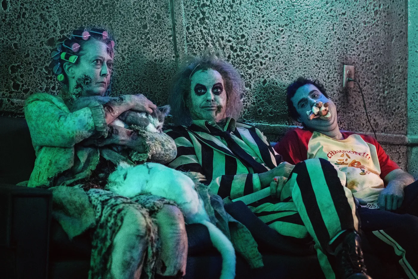 A pesar de que Burton niegue su capacidad para hacer rom-com y diga que no le gustó Love Actually (la historia va así, en una entrevista contó: “cuando fui a ver Love Actually me dijeron, 'si no te gusta la película algo anda mal contigo'… y pues a mi no me gustó”) tanto la primera (Beetlejuice) como la segunda (Beetlejuice, Beetlejuice) tienen un claro eje en el amor y el romance (no son solo unas películas sobre un fantasma y gusanos de arena y cabezas encogidas) en ambas hay boda… de hecho la boda de los mismo personajes. Por si fuera poco hasta la pareja actual de Burton está dentro de la película; la actriz Monica Bellucci, quien interpreta a la ex esposa -¿o técnicamente viuda?- de Beetlejuice.