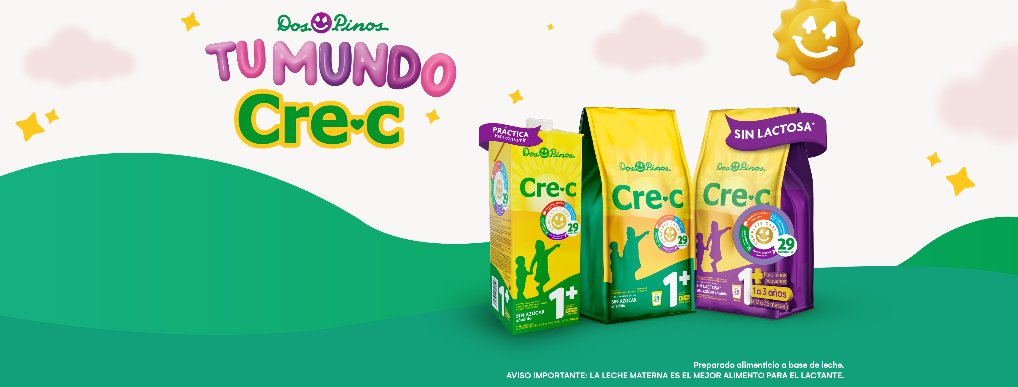 La nueva Cre-C 1+ está disponible en polvo regular y sin lactosa, sin azúcar añadida y elaborada con leche entera. Las presentaciones incluyen envases de 1.5 y 2 kg, además de opciones más pequeñas de 800 y 350 g, disponibles en las Cadenas Walmart en todo el país.