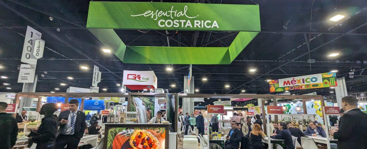 El stand esencial COSTA RICA es el espacio donde los exportadores concretarán más de 54 citas de negocios y, además, presentarán con una amplia gama de productos, entre los que se incluyen piña fresca, yuca, taro, chayote, eddoes, flores y follajes tropicales. Como parte de la estrategia de promoción, se realizan activaciones interactivas, incluyendo degustaciones de platillos elaborados con productos costarricenses y café nacional, asimismo, se presenta tecnología de realidad virtual (VR) del sector agrícola a través del programa Descubre, para que los asistentes experimenten la oferta exportable de manera inmersiva.