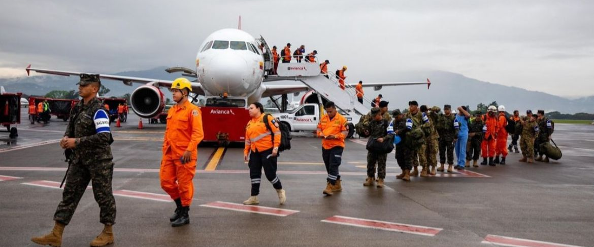 En este primer avión se reporta que llegaron 100 personas rescatistas, personal de primeros auxilios y demás expertos en atención de emergencias. Asimismo, desde el Ministerio de Seguridad Pública, específicamente los jerarcas de Gobernación y Migración, recibieron al primer grupo de brigadistas salvadoreños e informaron que también les entregaron"15 toneladas de víveres y 6 toneladas de insumos para desarrollar la misión humanitaria en las localidades más afectadas".