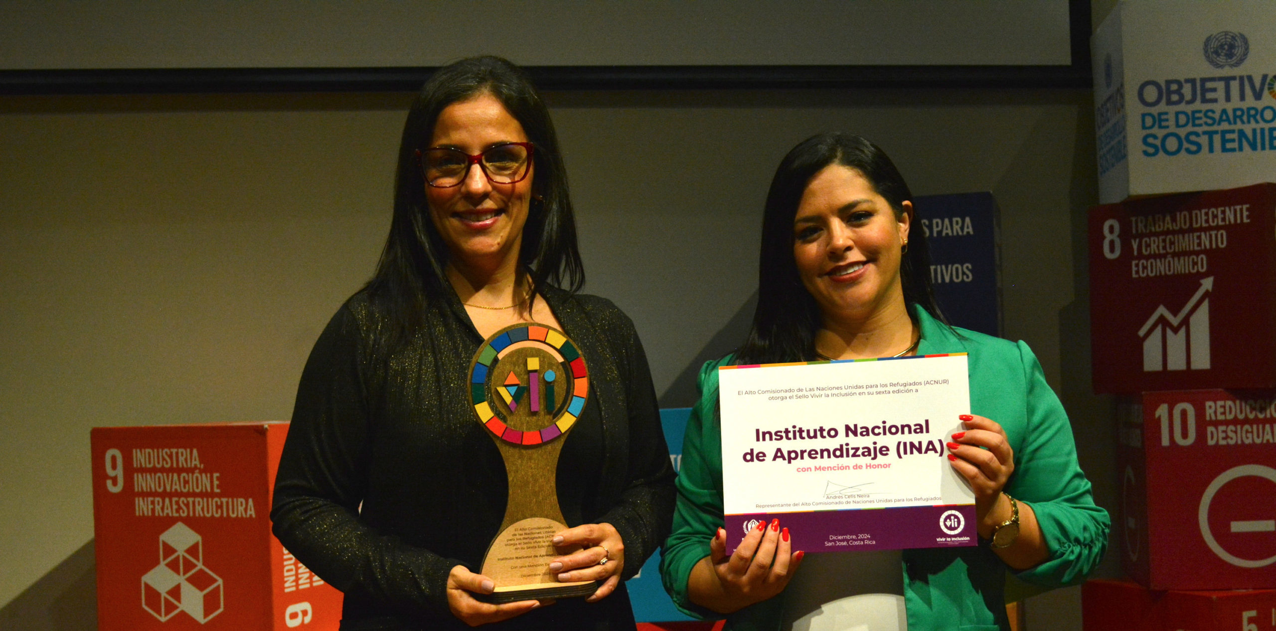 La Oficina del Alto Comisionado de la ONU para los Refugiados (ACNUR) reconoció la labor del INA en materia de atención a personas refugiadas al concederle la mención honorífica del “Sello Vivir la Inclusión”, una iniciativa nacional con la que el ACNUR reconoce las acciones de organizaciones e individuos en pro de la inclusión de las personas refugiadas y solicitantes de asilo para el desarrollo de un medio de vida formal y decente.