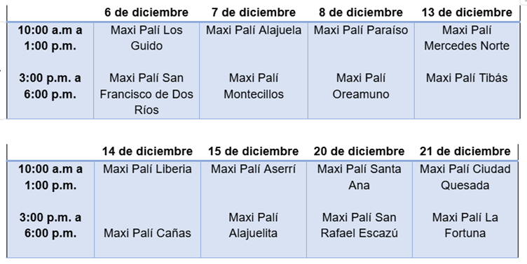 Además, el domingo 22 de diciembre se realizará el “Evento Maxi Navidad” en Maxi Palí El Cruce, (cruce San Miguel de Desamparados) de 11:00 a.m. a 5:00 p.m. Un pasacalles navideño, juegos interactivos para ganar premios y la posibilidad de tomarse una fotografía con Santa Claus, formarán parte de la actividad.