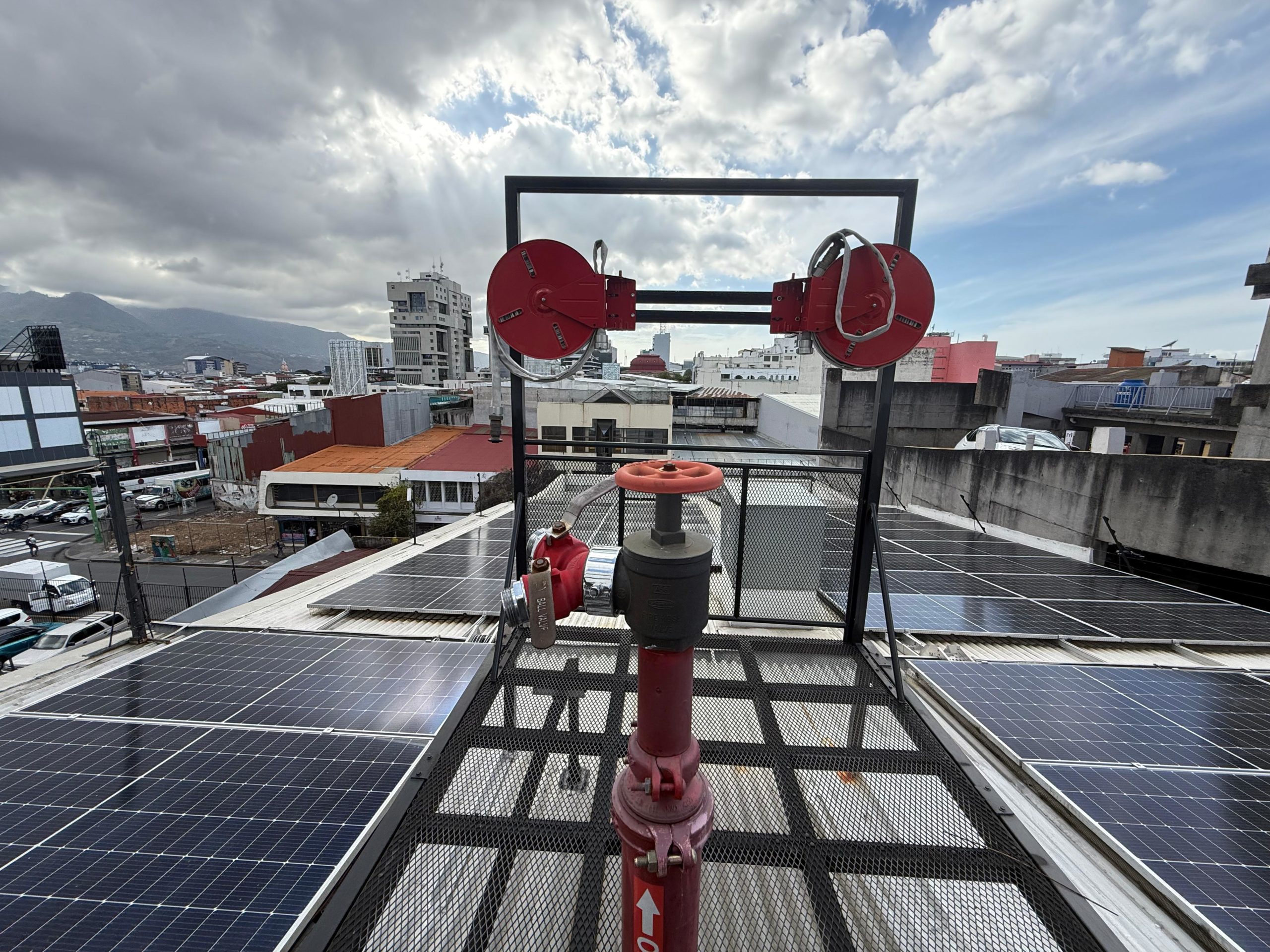 Este sistema, ubicado en la azotea del edificio principal en Oficinas Centrales permite el suministro de agua suficiente para poder repeler un siniestro, en cualquier estructura ubicada en un perímetro de 200 metros a la redonda, sin necesidad del uso de los hidrantes.