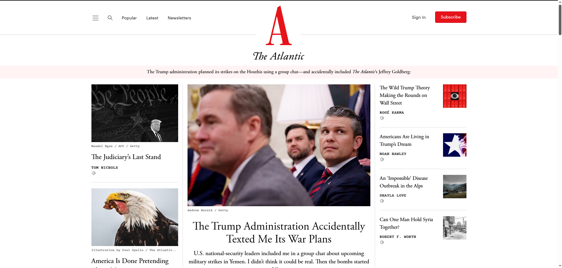— Según el reportaje de The Atlantic, los mensajes contenían detalles operativos sobre los ataques de Estados Unidos contra los rebeldes hutíes en Yemen, incluidos objetivos específicos, armas a utilizar y el orden de ejecución de los bombardeos. Jeffrey Goldberg, editor en jefe de la publicación, aseguró que recibió la información en la mañana del 15 de marzo y que apenas dos horas después comenzaron los ataques aéreos estadounidenses en Yemen.