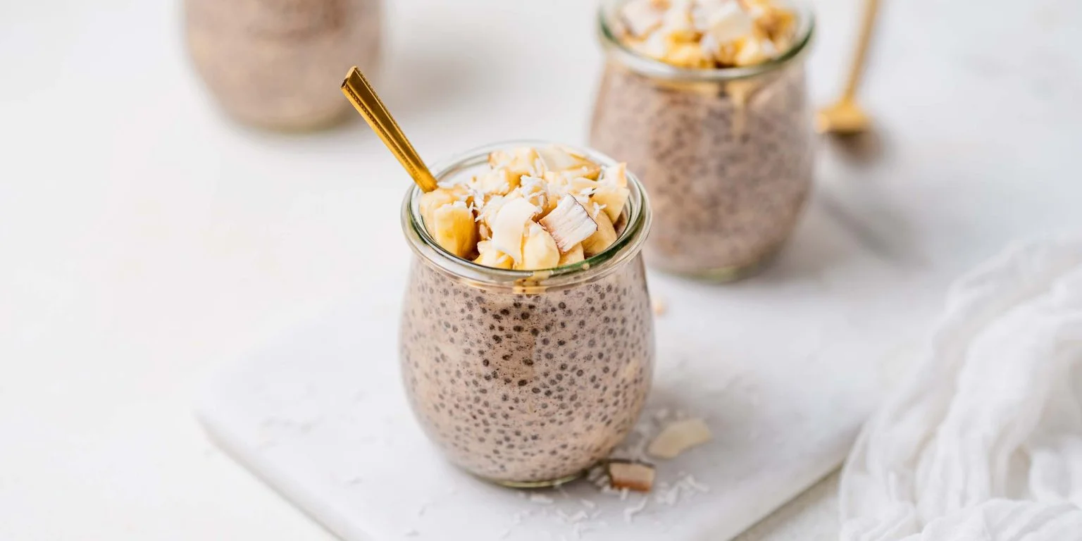 - Sirve en frascos de vidrio y decora con el plátano picado y los copos de coco.