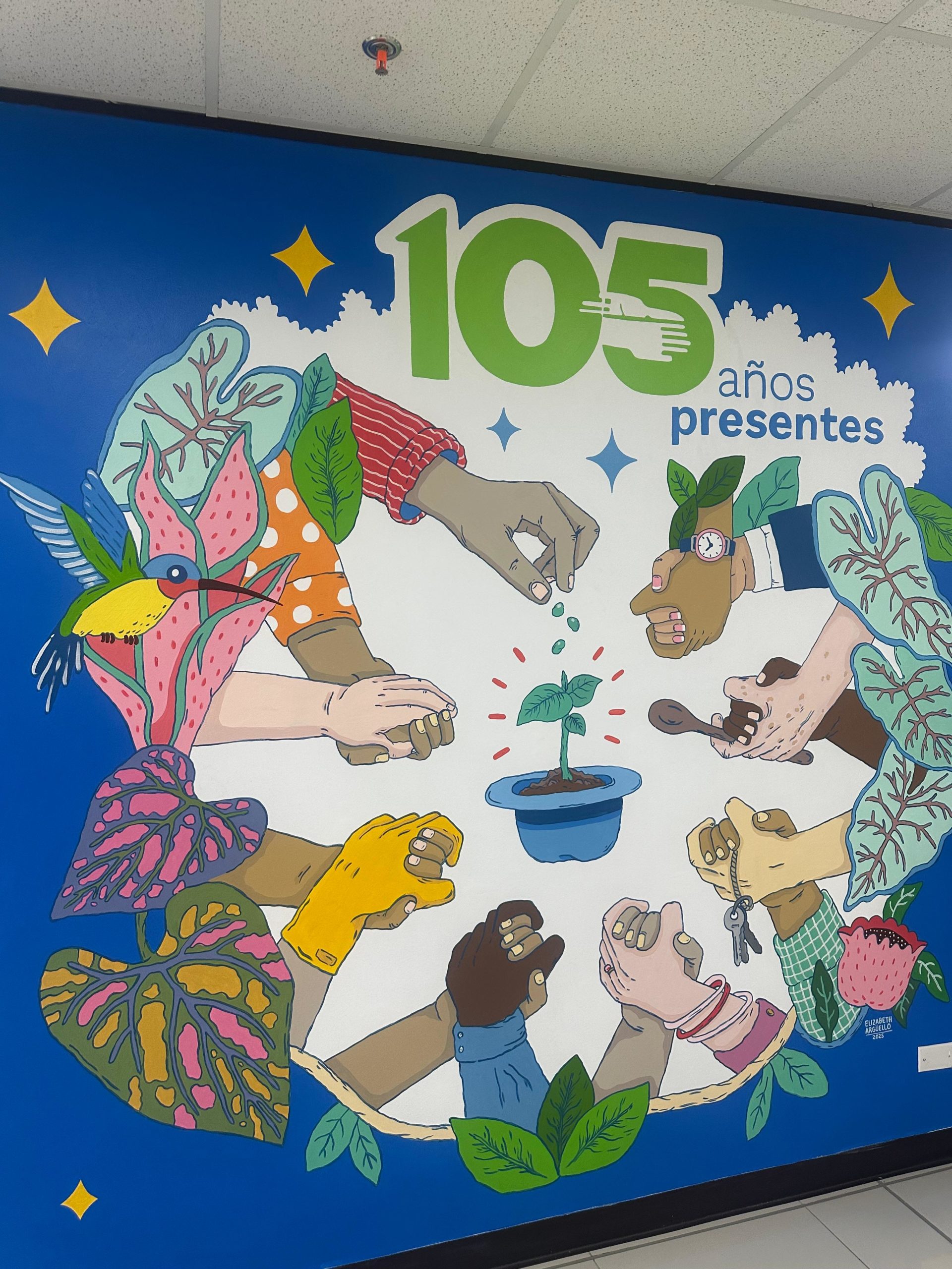 Con motivo de su 105 aniversario, la Sociedad de Seguros de Vida del Magisterio Nacional rinde homenaje a las personas trabajadoras de la educación mediante un mural creado por la destacada artista nacional Elizabeth Argüello.