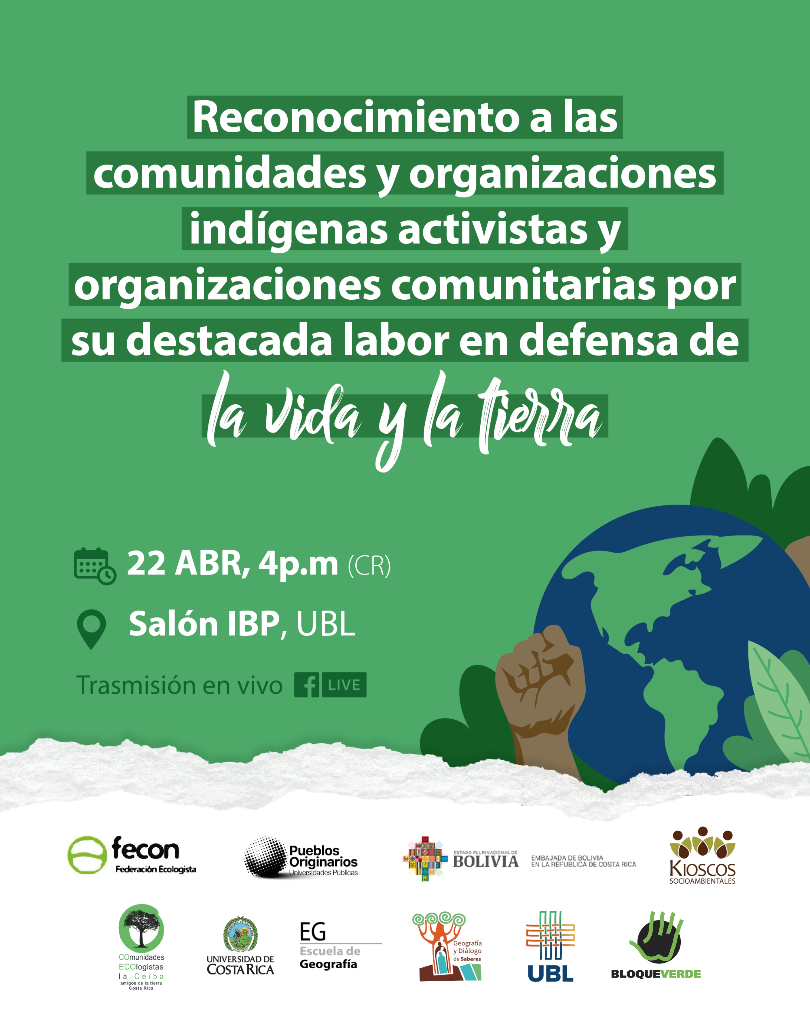 Para conmemorar el Día de la Tierra, la agrupación impulsa un homenaje a las personas defensoras ambientales. El evento será este 22 de abril en la Universidad Bíblica Latinoamericana de 4:00 p.m. a 7:00 p.m.