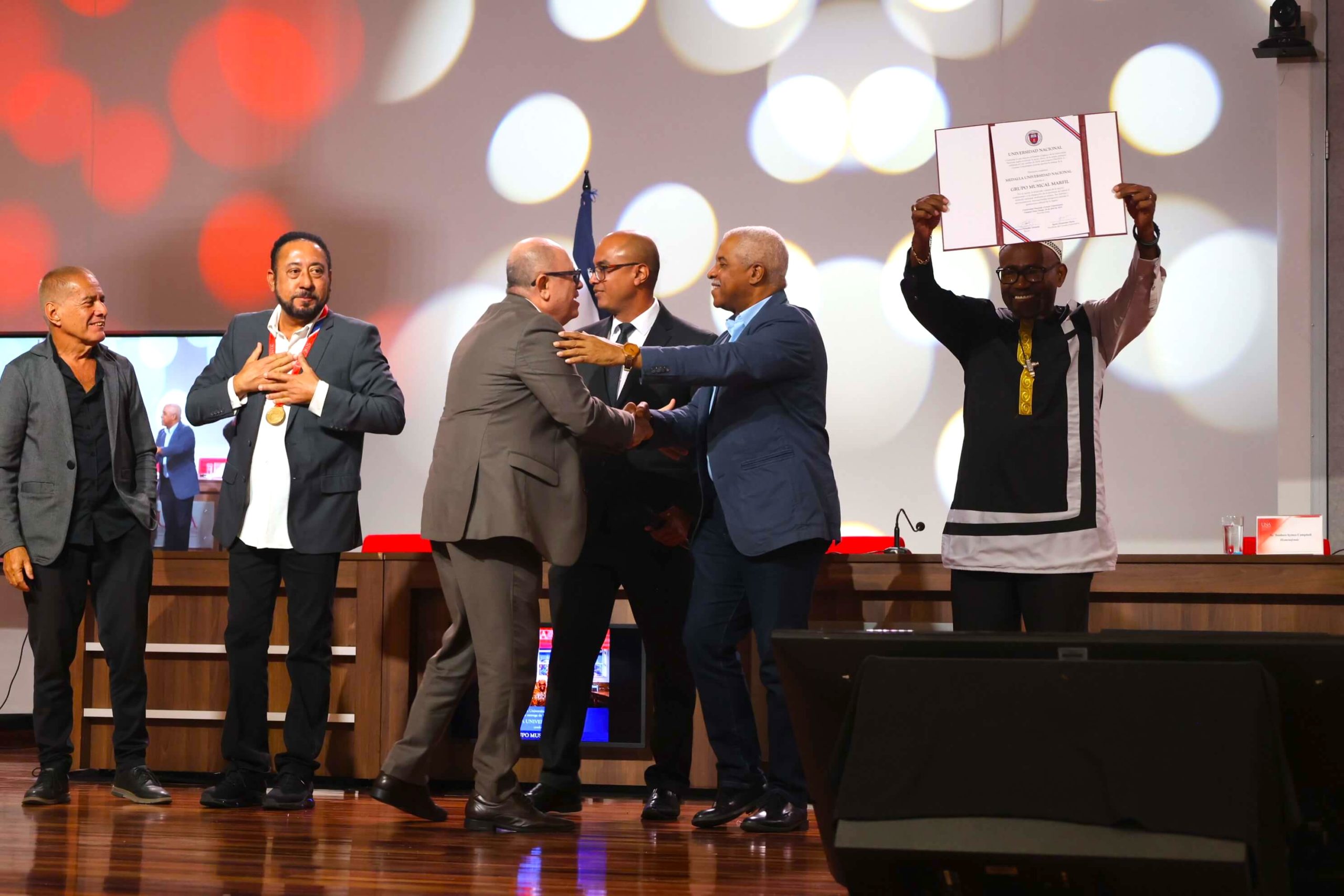 Este jueves 24 de abril, el grupo costarricense Marfil fue reconocido con la Medalla Universidad Nacional, una de las distinciones institucionales más importantes otorgadas por la Universidad Nacional (UNA). La ceremonia se llevó a cabo en el auditorio Cora Ferro, donde se destacó la trayectoria del grupo limonense y su impacto en el desarrollo cultural del país.