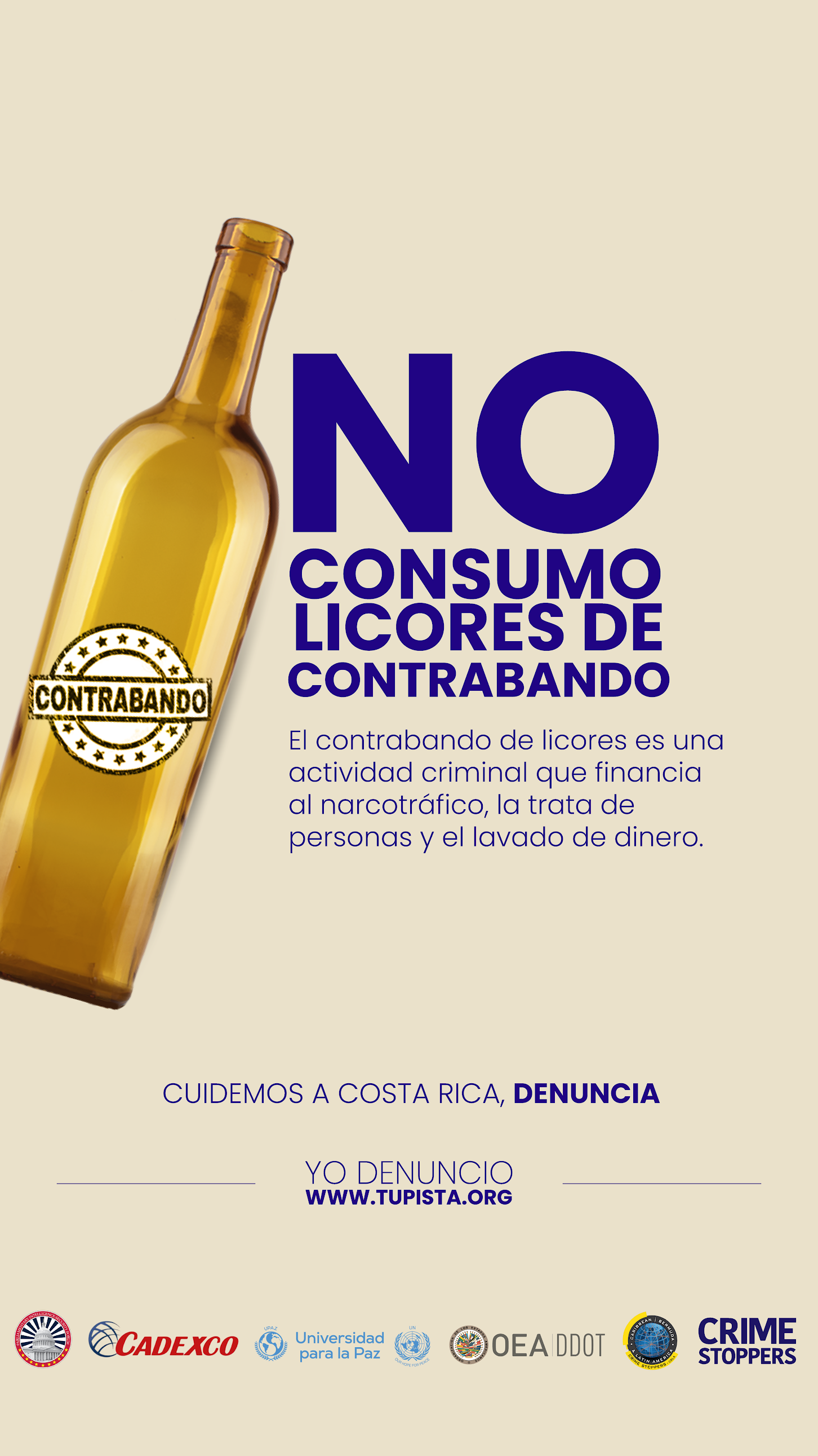 Ante esta realidad, Crime Stoppers, en conjunto con el Departamento contra la Delincuencia Transnacional Organizada de la OEA, el Foro Parlamentario de Inteligencia y Seguridad de los Estados Unidos, CADEXCO y la Universidad para la Paz, lanzó la campaña “Lo que comprás hoy define el futuro de mañana, cuidemos a Costa Rica”.