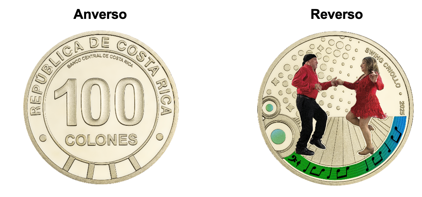 Según señala el BCCR se contará con una moneda de circulación regular que no mostrará colores en su diseño, para su uso como medio de pago y que mantiene su valor nominal de ₡100.