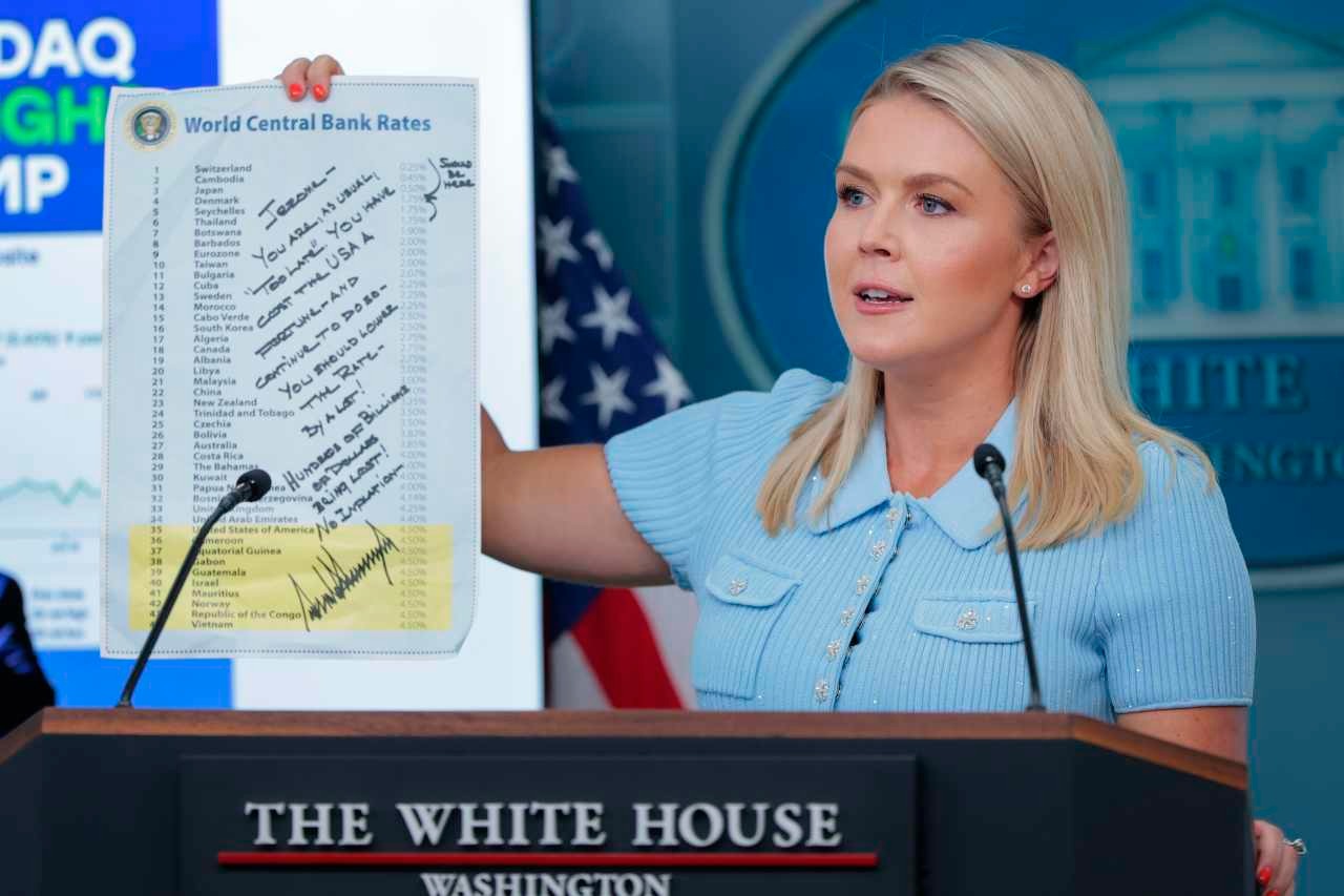 Karoline Leavitt, secretaria de prensa de la Casa Blanca, leyó el mensaje de Trump dirigido a Powell: