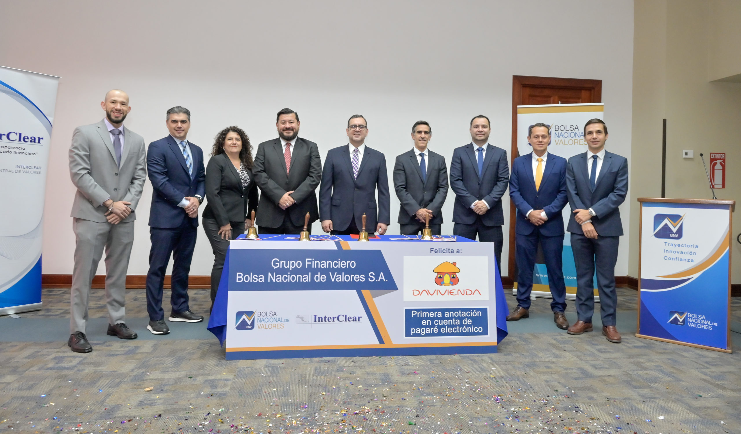 Davivienda Costa Rica marca un hito al convertirse en el primer banco del país en gestionar una anotación en cuenta en el Registro Electrónico Centralizado de Pagarés y Letras de Cambio, nuevo servicio habilitado por InterClear, la primera entidad de registro autorizada en Costa Rica por la Superintendencia General de Valores (SUGEVAL).