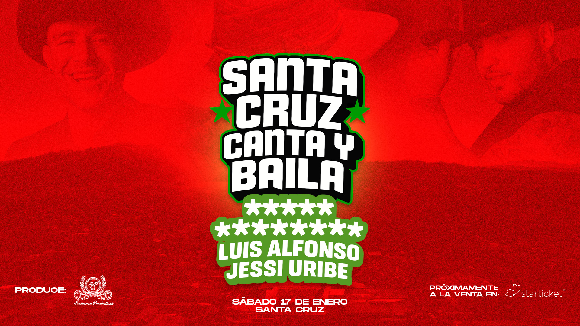 Este 2026, la agenda artística contará con un evento sin precedentes: el concierto internacional con los artistas Jessi Uribe y Luis Alfonso, quienes se presentarán por primera vez en Santa Cruz el sábado 17 de enero, en un espectáculo exclusivo para mayores de 18 años. También se comunica la posibilidad de un tercer artista que pronto será revelado.