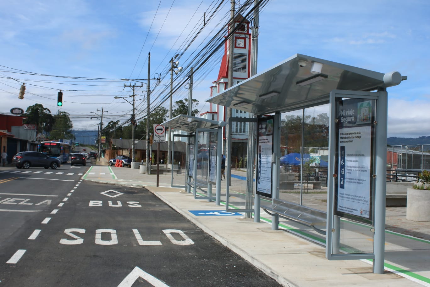 “Venimos avanzando en el establecimiento de escampaderos, zonas seguras para esperar el autobús; ya la Municipalidad llega a 25 escampaderos en el cantón, espacio donde las personas pueden esperar el autobús con cámara de seguridad, sistema de alerta, botón de emergencia, acceso wifi a, facilidades para personas en sillas de ruedas; esto es parte de los proyectos de la Municipalidad de Cartago para garantizar mejor calidad de vida a la población”, resaltó el alcalde de Cartago, Mario Redondo Poveda.