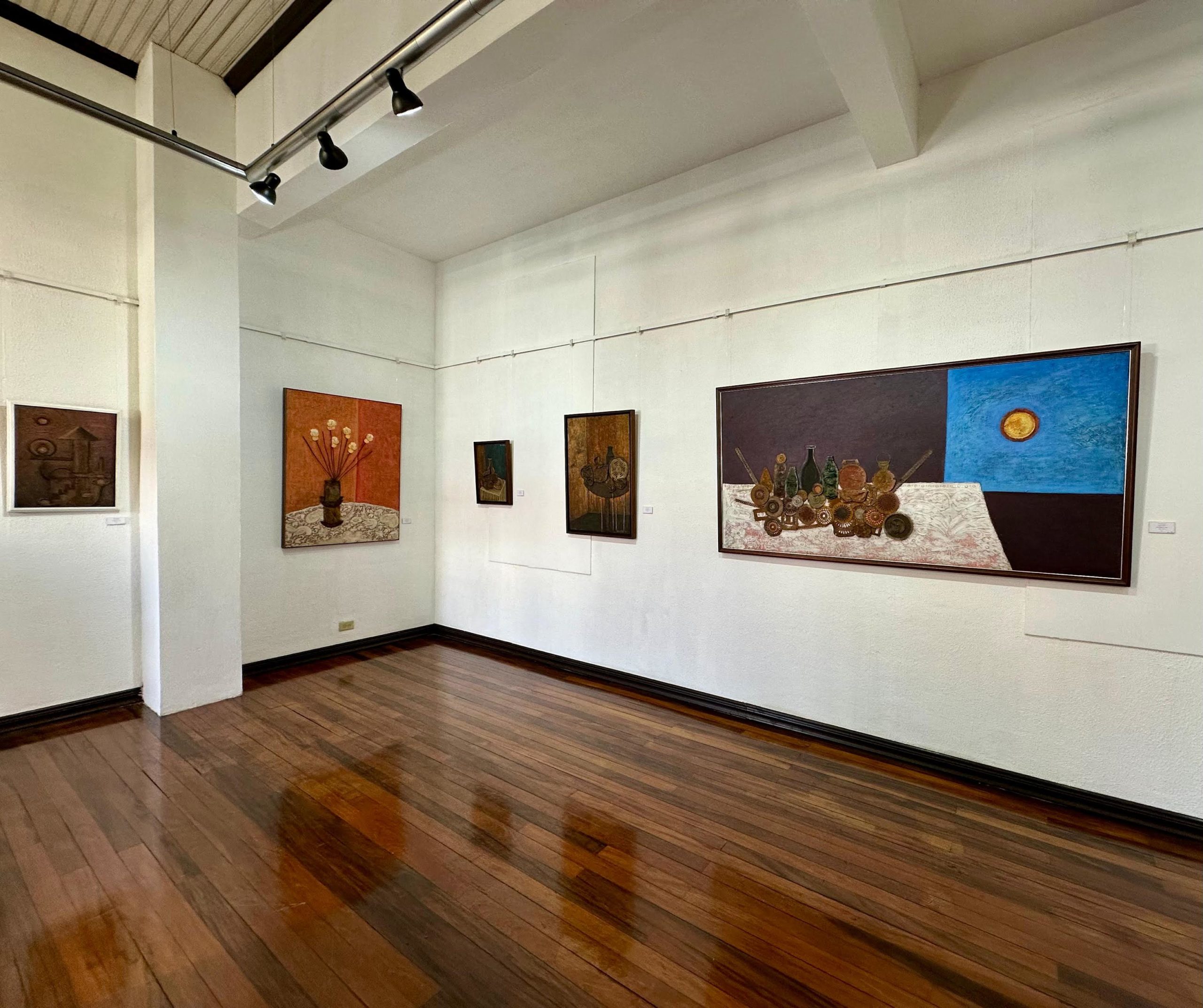 La exposición incluye 14 piezas de distintas series realizadas entre la década de 1980 y 2013, elaboradas con técnicas de pintura matérica y collage con metal. También se presentan tres vitrinas con material de archivo personal y de la fundación, que documentan la trayectoria de más de 50 años de la artista y sus raíces en Alajuela.