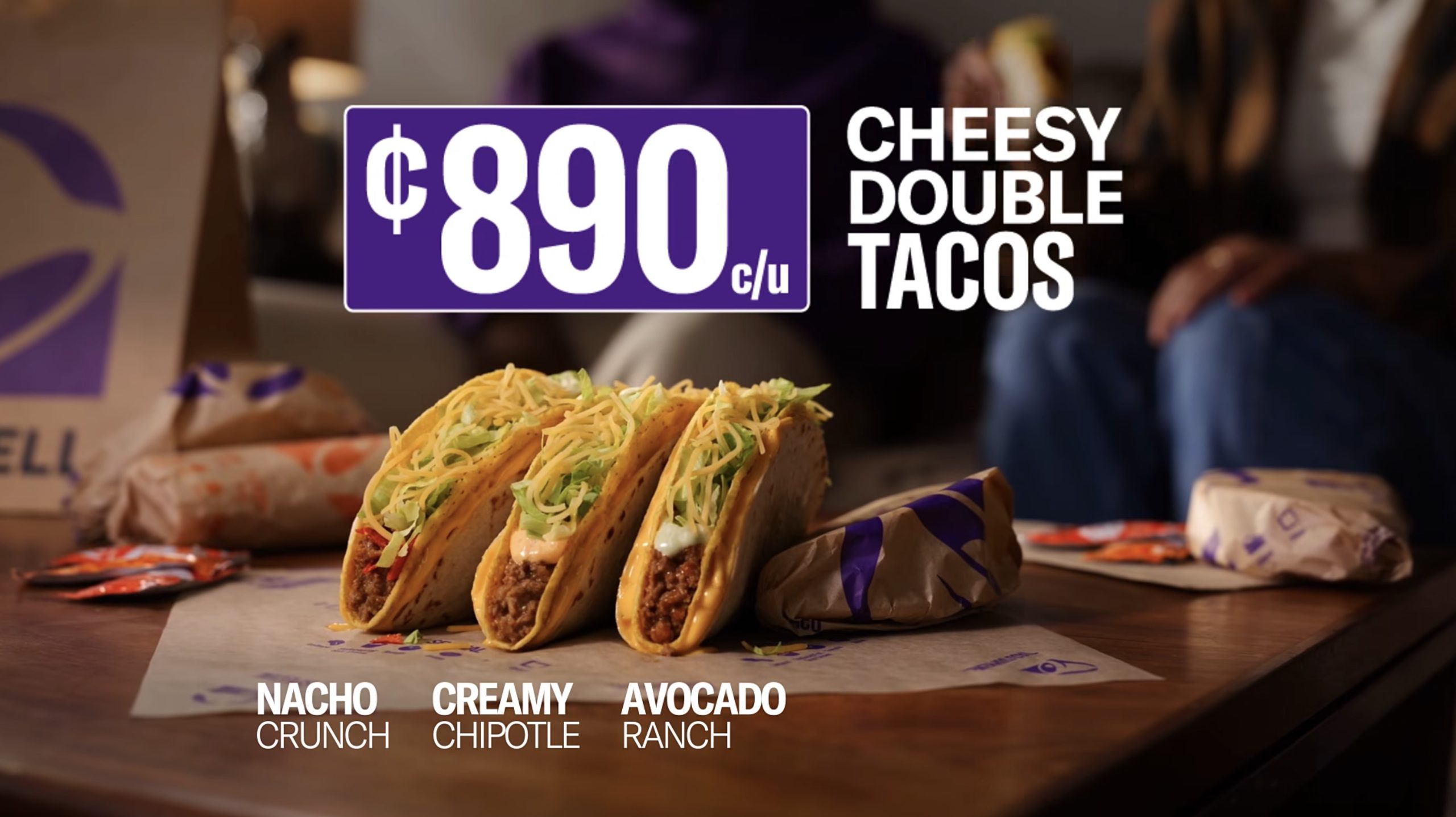 Cada Cheesy Double Taco combina doble tortilla con una capa de salsa de queso, carne molida de Taco Bell®, lechuga fresca y queso rallado. La versión Nacho Crunch incluye nachos crujientes, mientras que Creamy Chipotle y Avocado Ranch destacan por sus salsas exclusivas.