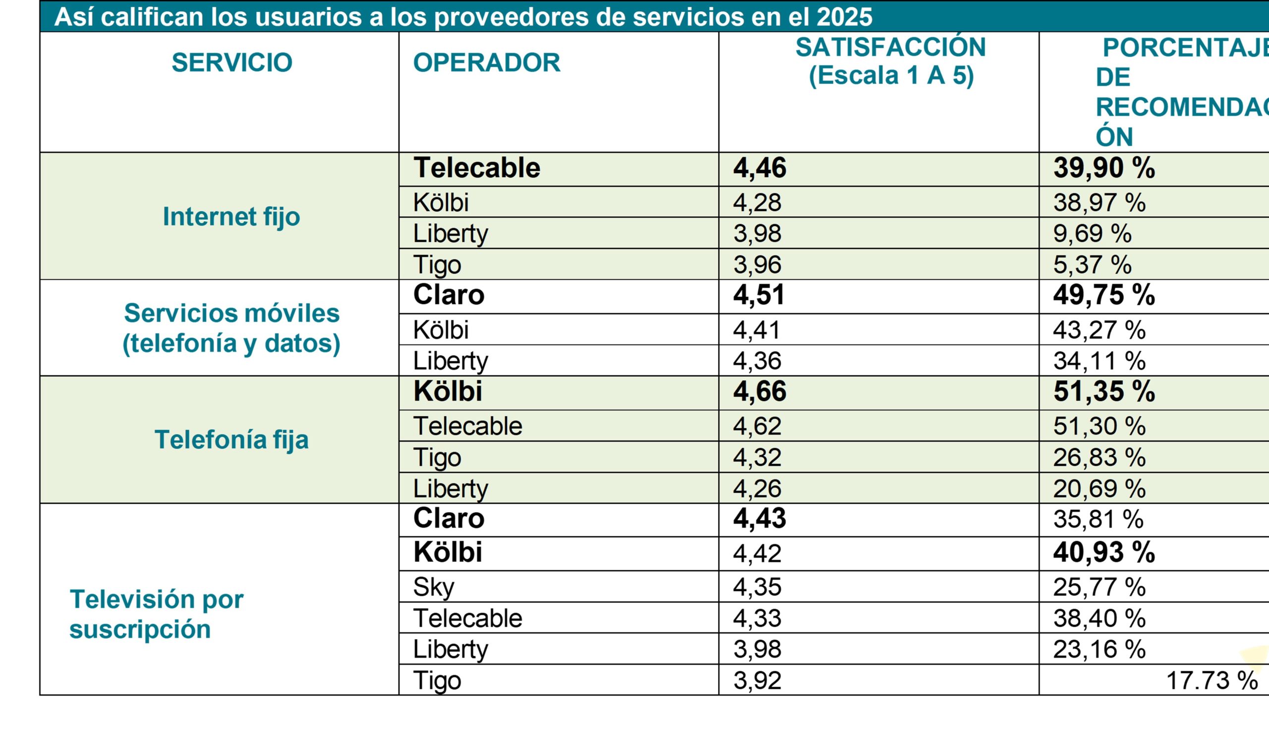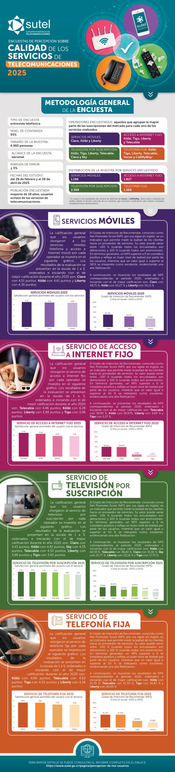 La Superintendencia de Telecomunicaciones (Sutel) dio a conocer los resultados de la Encuesta Nacional de Percepción de los Usuarios 2025, una herramienta que permite conocer cómo califican los costarricenses los principales servicios de telecomunicaciones que utilizan día a día: telefonía fija, servicios móviles, televisión por suscripción e Internet fijo.