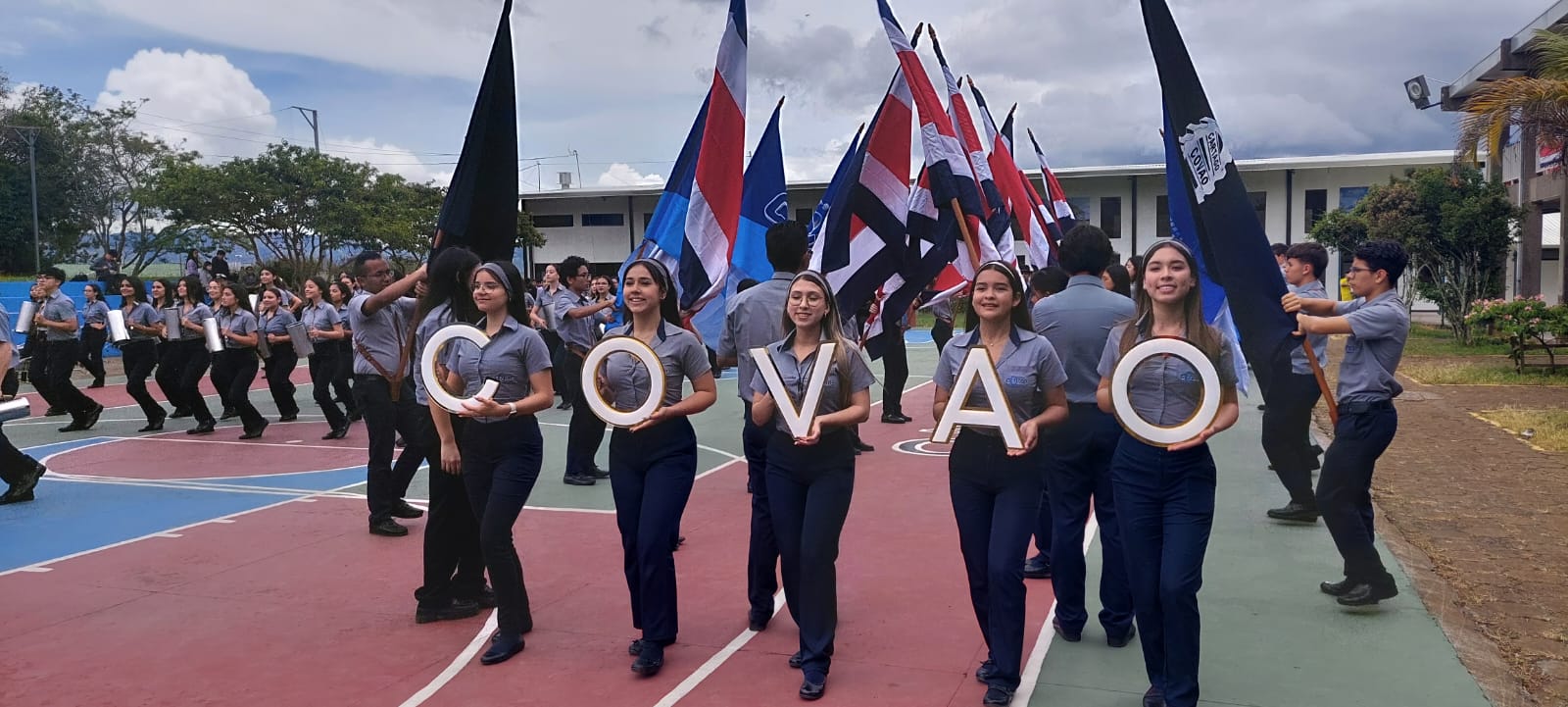 El COVAO nació hace más de 70 años, tiene mucha trayectoria. Ha formado muchos jóvenes para Costa Rica, profesionales excelentes. Y uno de los aportes más valiosos para el país ha sido la banda de percusión. Muchachos de diferentes especialidades que conforman este grupo de desfile que está integrado por varias delegaciones y que hacen su esfuerzo durante los recesos del almuerzo, para presentar sus mejores, talentos. Ensayan y lo hacen de una manera desinteresada. Esto es parte de la formación integral que les damos a los jóvenes aquí en esta institución”.