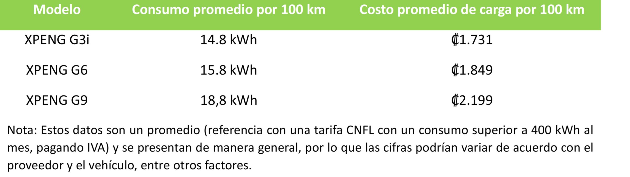 Con base en una tarifa eléctrica promedio de ₡117 por kWh, el costo estimado para recorrer 100 kilómetros es el siguiente: