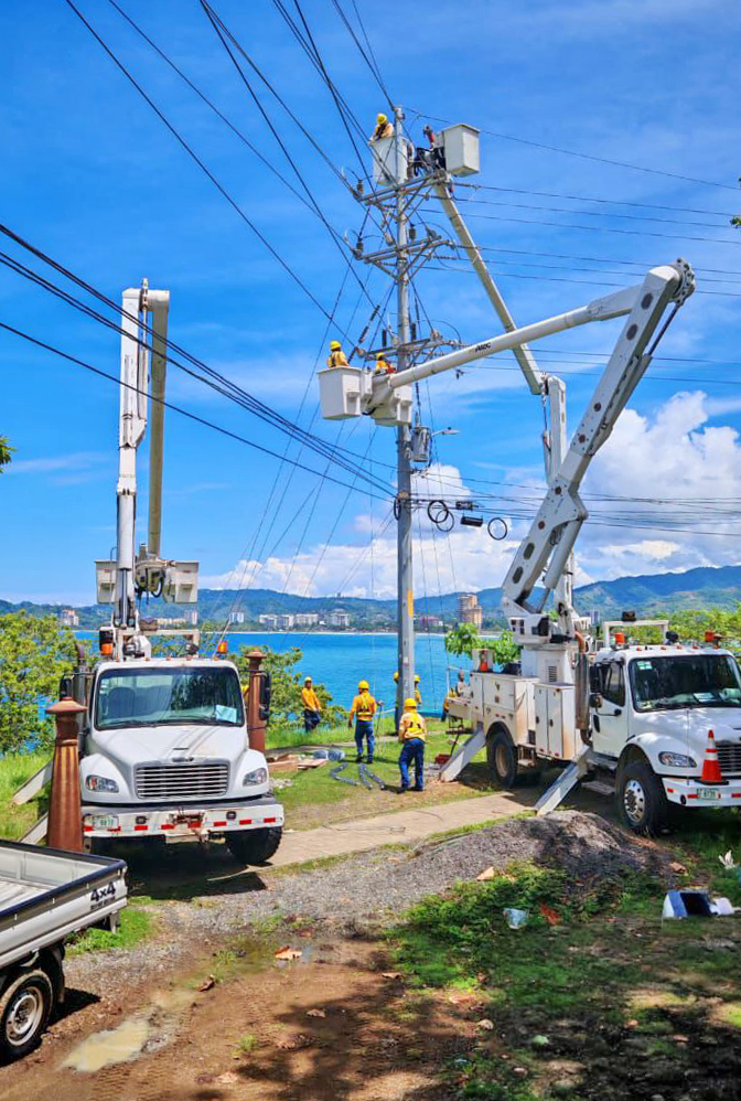 En electricidad se ejecutan 10 iniciativas que incluyen la expansión y la modernización de redes de distribución en poblaciones turísticas, indígenas y rurales (como Du Tuj y Kurá a Paso Real, y en Bajo Los Indios-Abrojo Montezuma), así como la instalación de alumbrado público con tecnología LED en Barranca y Santa Teresa de Cóbano.