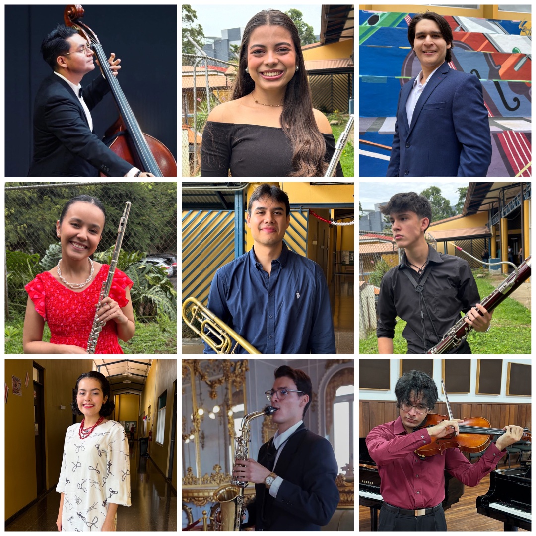 Estas nueve personas serán solistas en el Concierto de Jóvenes Solistas 2025 de la Benemérita Orquesta Sinfónica Nacional de Costa Rica (OSNCR), programado para el jueves 23 de octubre en el Teatro Nacional, a las 8:00 p.m.