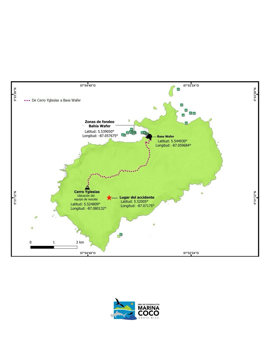 En la mañana del martes, funcionarios del Sistema Nacional de Áreas de Conservación (Sinac) recibieron una alerta en la Estación de Bahía Wafer, en la entrada de la isla, sobre la caída de un funcionario en el precipicio.