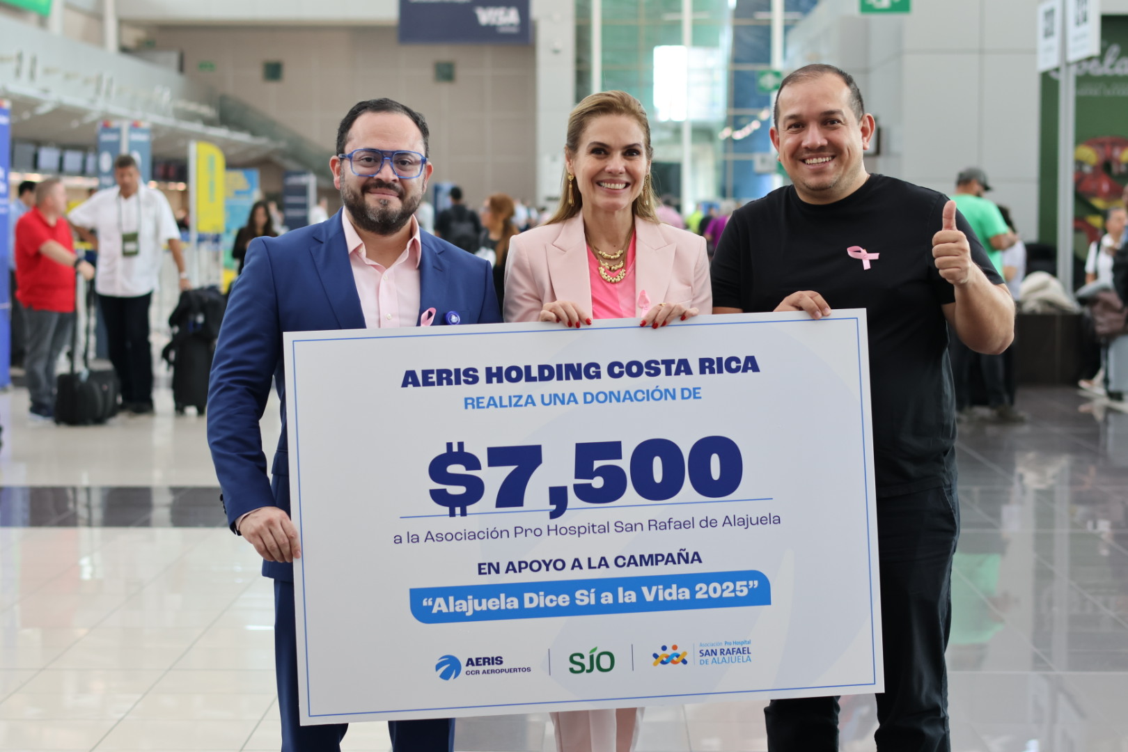 En el marco del Día Mundial de la Prevención del Cáncer de Mama, AERIS, gestor del Aeropuerto Internacional Juan Santamaría (AIJS), anunció la donación de un equipo de ultrasonido portátil modelo TE Air e5M al Hospital San Rafael de Alajuela, en conjunto con la Asociación Pro Hospital San Rafael de Alajuela, como parte de la décima primera edición de la campaña “Alajuela Dice Sí a la Vida, juntos contra el cáncer”.