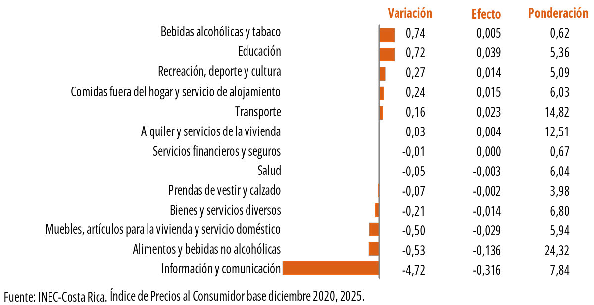 El Instituto Nacional de Estadística y Censos (INEC) presentó hoy los resultados del Índice de Precios al Consumidor (IPC) a septiembre de 2025, que indican una variación interanual de -1,00%.