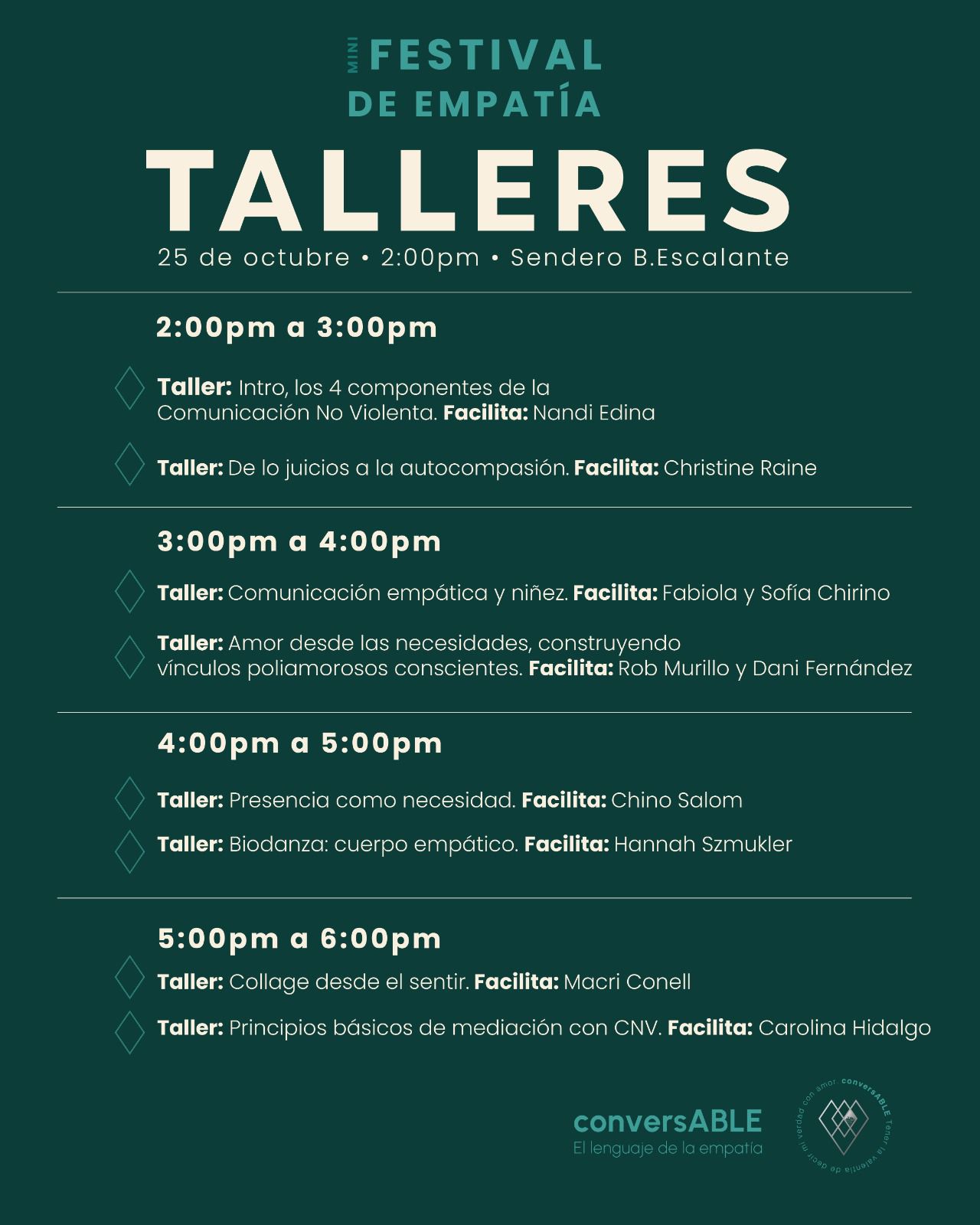 El festival invita a vivir la empatía en práctica, no solo en teoría. Con una programación de talleres de una hora, los llamados “activistas de empatía” —miembros de la comunidad ConversABLE— facilitarán ocho experiencias participativas sobre temas como: