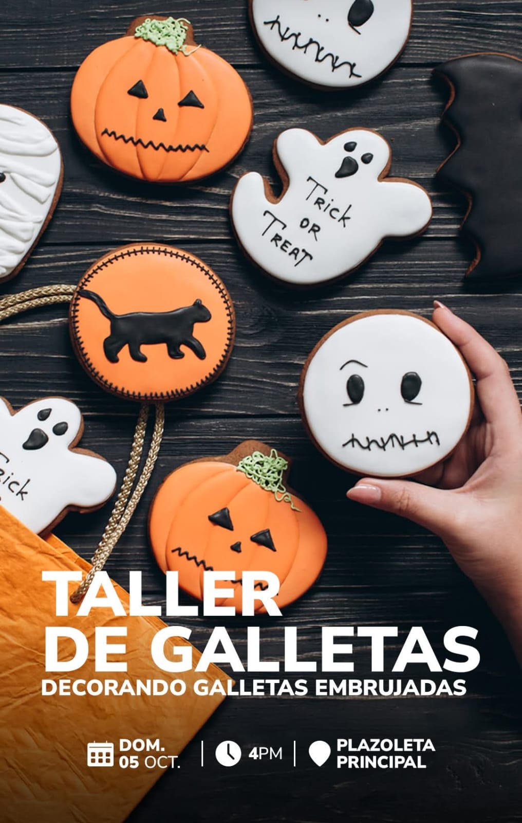 La agenda comienza con una dulce propuesta para los más pequeños de la casa: este domingo 5 de octubre se llevará a cabo el Taller de Galletas Embrujadas, a partir de las 4:00 p.m. en la plazoleta principal. Una experiencia interactiva para niños y adultos, quienes podrán decorar deliciosas galletas con temática de Halloween.