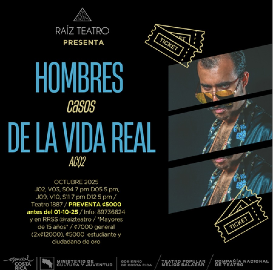 El espectáculo Hombres, casos de la vida real (ACQ2) regresa para ofrecer una puesta en escena que busca abrir conversación sobre temas masculinos pocas veces discutidos en la sociedad costarricense. La obra, dirigida por Katherine "LaPey" Peytrequín Gómez, ofrecerá solo ocho funciones en el Teatro 1887, dentro del CENAC.
