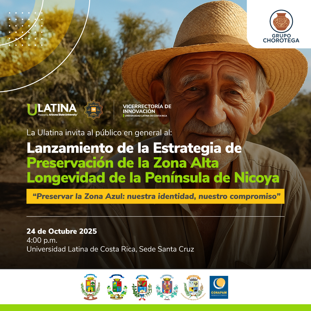 Costa Rica da un paso firme hacia la protección de uno de sus patrimonios más valiosos: la longevidad. Este viernes 24 de octubre, la Universidad Latina de Costa Rica, en colaboración con el Grupo Chorotega y aliados institucionales, lanzará oficialmente la Estrategia de Preservación Sociocultural y Factores Protectores de la Zona de Alta Longevidad de la Península de Nicoya, bajo el lema “Preservar la Zona Azul: Nuestra identidad, nuestro compromiso”.