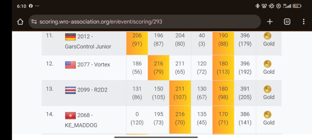 Un segundo equipo costarricense brilló en las Olimpiadas Mundiales de Robótica World Robot Olympiad (WRO) 2025, celebradas recientemente en el Sands Expo & Convention Centre, Singapur. Se trata de R2D2, equipo de la academia Praym, ubicada en Esparza, Puntarenas, que alcanzó el puesto número 13 del mundo entre 112 equipos participantes en la categoría RoboMission Junior. Con este resultado, también se posicionaron como el mejor equipo centroamericano en su división.