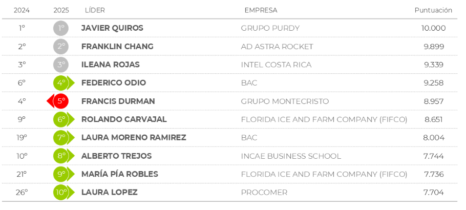 Ranking de los líderes con mejor reputación en Costa Rica 2025