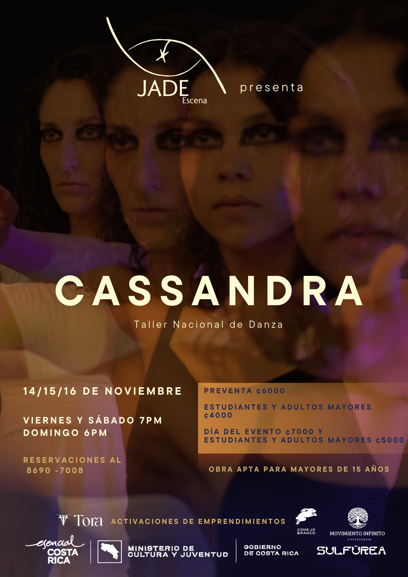 El colectivo costarricense JADE Escena estrenará la obra Cassandra, una propuesta interdisciplinaria que combina danza, teatro y danza aérea para revisitar el mito de la princesa troyana en un contexto moderno. Las funciones se realizarán los días 14, 15 y 16 de noviembre en el Taller Nacional de Danza.