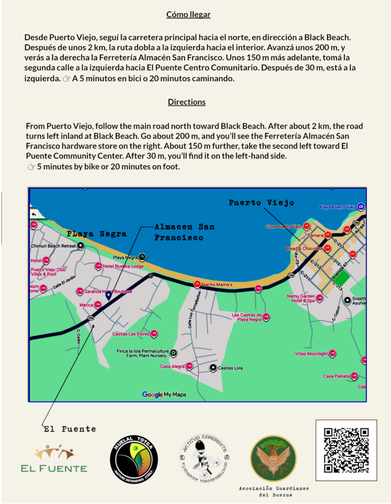 El punto de reunión será El Puente, espacio cultural de la comunidad bribri, donde desde las 9:00 a.m. se ofrecerán talleres ambientales, charlas, documentales y actividades infantiles, además de una sopa comunitaria y un mercadito solidario con productos y publicaciones de colectivos locales. La entrada es gratuita, con donaciones solidarias bienvenidas.